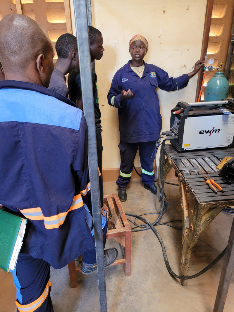 Über zwei Wochen hinweg arbeiteten 15 Teilnehmerinnen aus verschiedenen Regionen Ugandas an praxisorientierten Projekten, bei denen sie ihre Fertigkeiten in der Schweißtechnik vertieften und gleichzeitig die Werkstatt infrastrukturell ausbauten, etwa durch den Aufbau von Schweißkabinen und eines Materiallagers. Der Fokus lag dabei auf einem „Training-of-Trainers“-Ansatz, um die Teilnehmerinnen zu befähigen, ihr Wissen weiterzugeben und die Ausbildung nachhaltig zu verbessern.