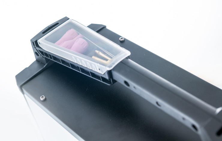 The ergonomic handles allow you to move your machine safely and effortlessly. The workpiece lead or torch hose package can be properly fixed to the handles. There welding torch.